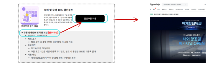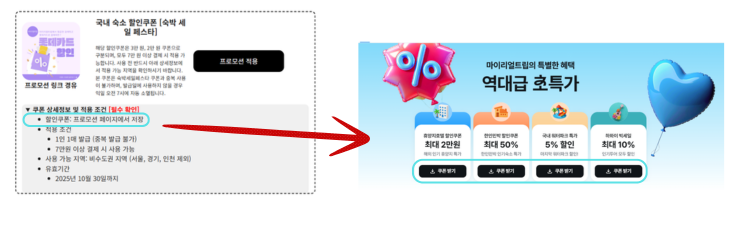 - 적용 가능 상품: 결제금액 별 적용 가능 상품 상이 (호텔 및 항공권 등 상세페이지에서 확인)